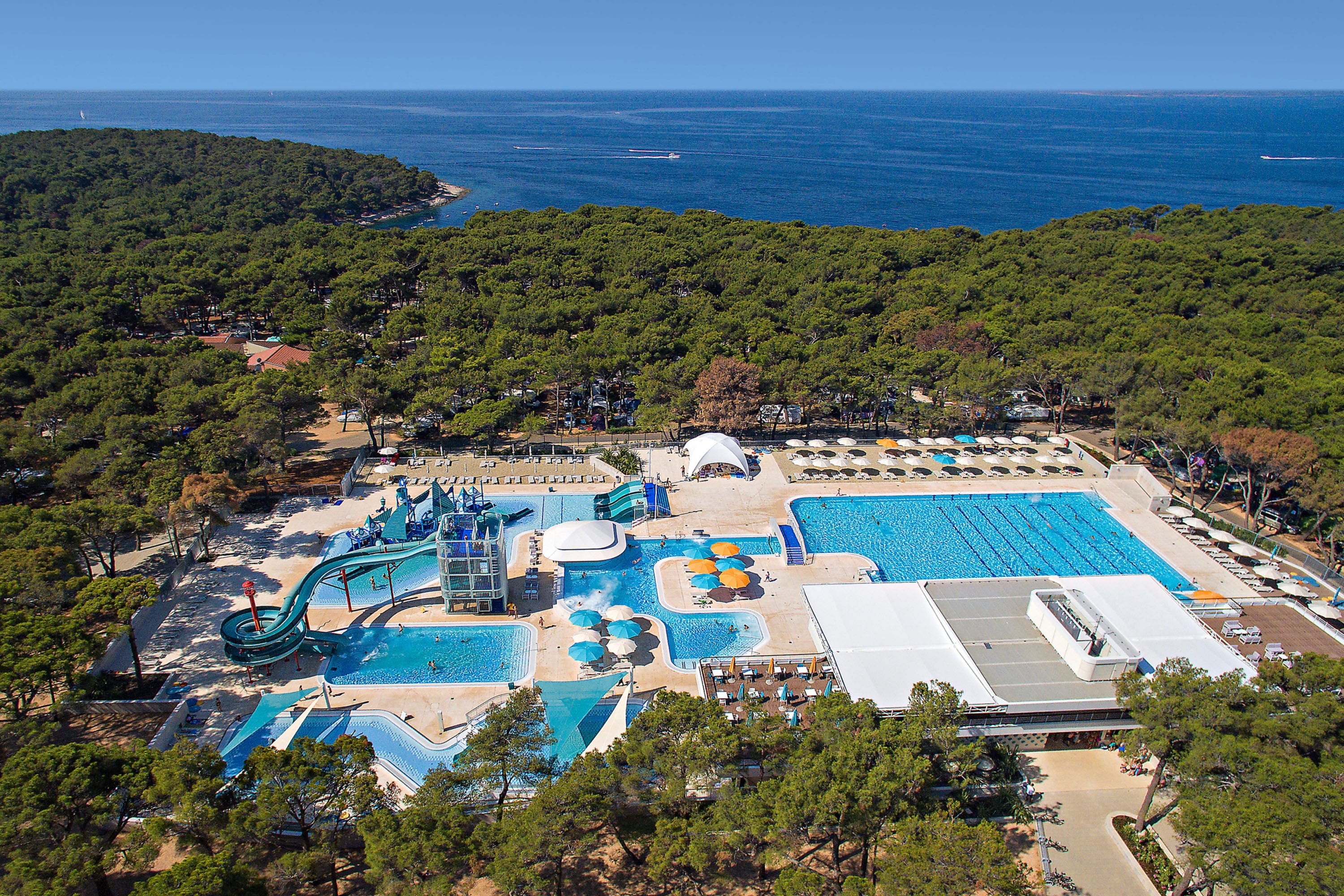 Naar het strand Je bent hier op slechts vijf kilometer van het prachtige strand van Peroj, een klein dorpje in Zuid-Istrië. De helderblauwe zee brengt je ongetwijfeld helemaal in de vakantiestemming. Slippers, handdoek en zonnebrand inpakken en je bent klaar voor een stranddagje! Maar ook op de camping zelf is een verfrissende duik nooit ver weg. Er is een zwembad met een ondiep gedeelte speciaal voor kinderen. Het terras met ligstoelen en parasols is de plek om op te drogen en te genieten van de warme Kroatische zon.