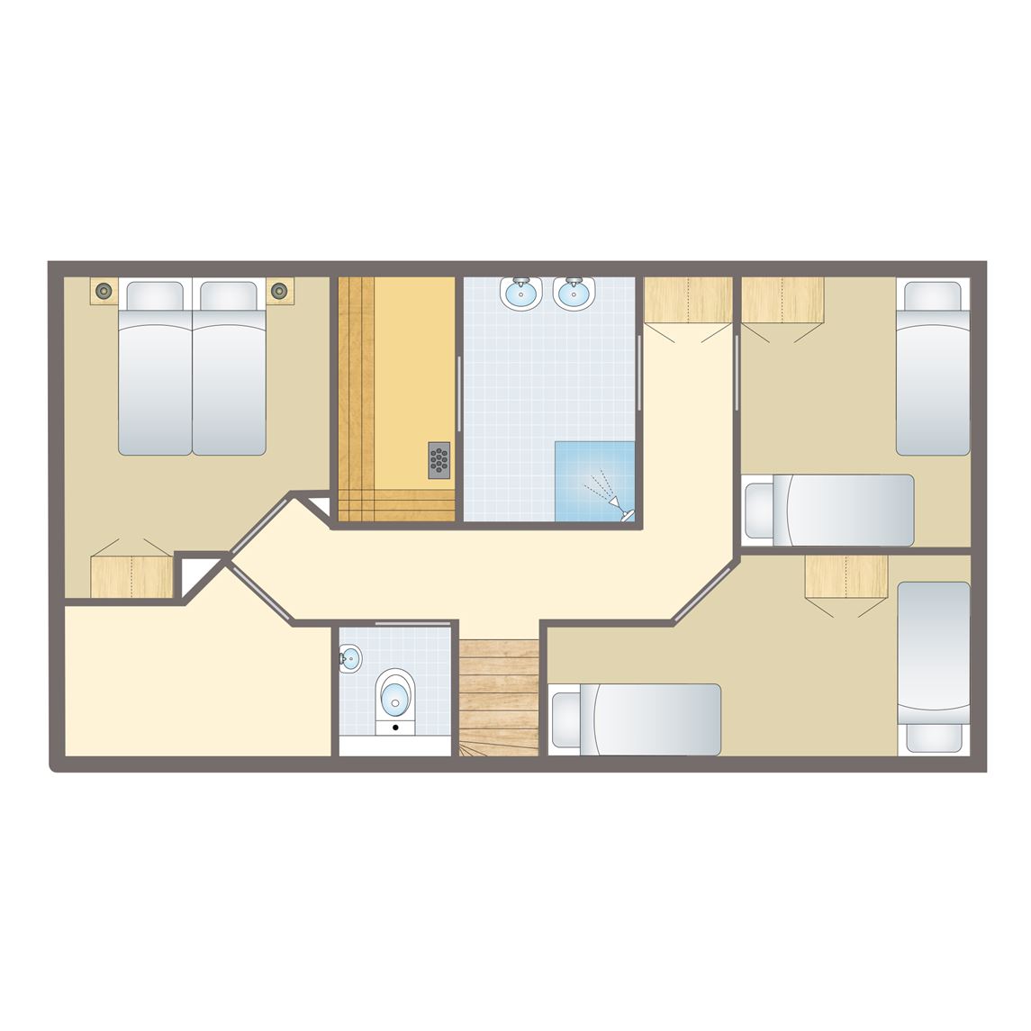 p U kunt in dit moderne vrijstaande zespersoons chalet genieten van uw vakantie. Het chalet is gelegen op vakantiepark Residence de Leuvert, een gezellig vakantiepark in het Noord Brabantse dorpje Cromvoirt. Het gezellige familiepark staat garant voor een hoop vakantieplezier voor jong en oud. In de omgeving kunt u heerlijk genieten van de bourgondische sfeer. Eet een heerlijke Bossche bol op één van de gezellige terrassen of drink een lekker Brabants biertje. In het prachtige gebied van Cromvoirt vindt u ook diverse natuurgebieden waar u heerlijk kunt genieten van de verschillende landschappen, de natuur en de rust. p p In de leefruimte vindt u de woonkamer met flatscreentelevisie, de eethoek en de aangrenzende keuken. De keuken is voorzien van de hedendaagse faciliteiten zoals een 4 pits kookstel, een vaatwasser, een combimagnetron, een koel vriescombinatie en een Nespresso. Er zijn drie slaapkamers aanwezig waarvan twee beschikken over twee éénpersoonsbedden en een slaapkamer die beschikt over een stapelbed. In de badkamer vindt u de douche en de wastafel. Er is een apart toilet. Buiten heeft u uw eigen terras met tuinmeubilair en parkeergelegenheid voor één auto. p416,65