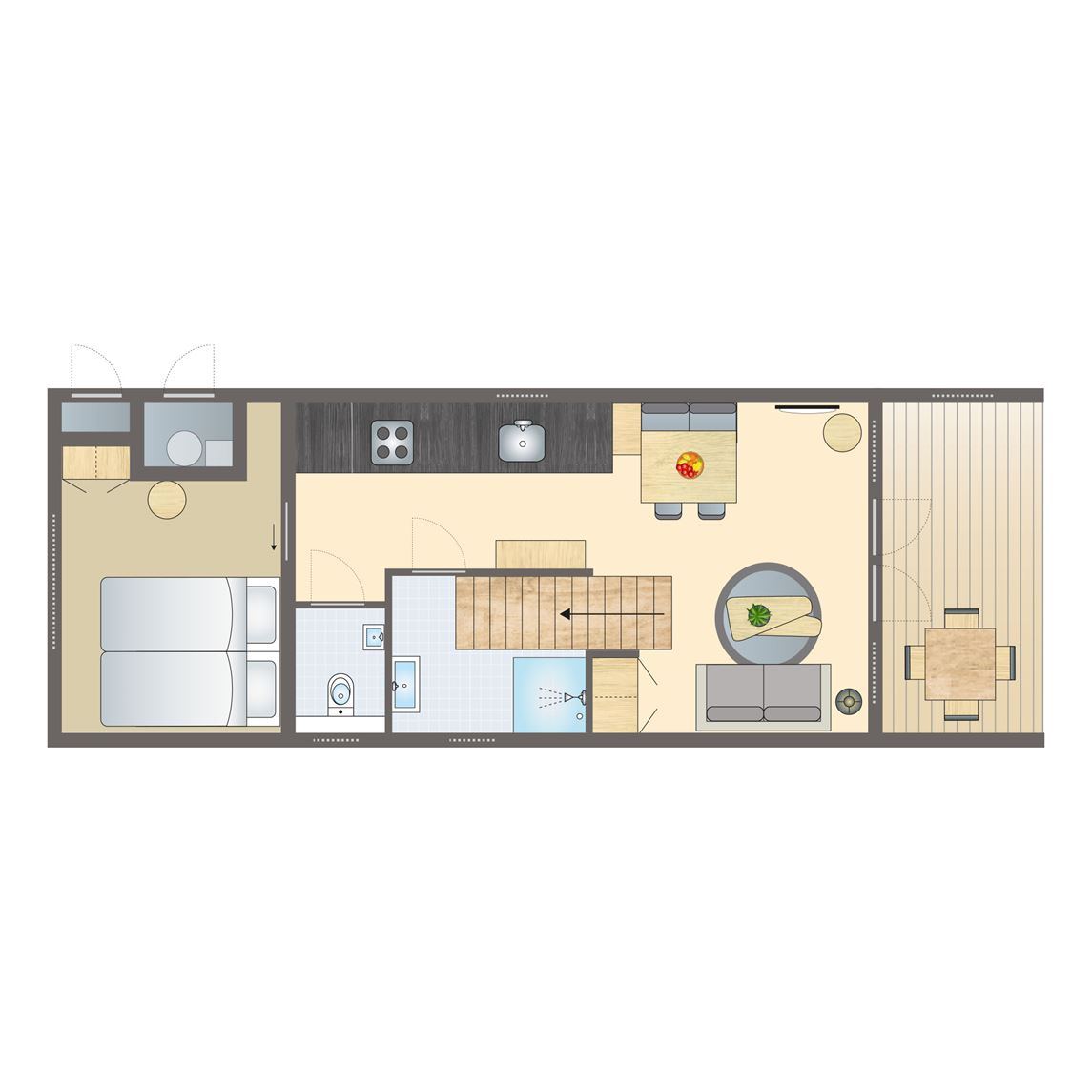 gratis wifi,modern interieur,zonnepanelen aanwezig,inpandige berging,gebouwd met duurzame materialen,vloerverwarming,centrale ligging,Horren aanwezig,in enkele accommodaties zijn huisdieren toegestaan,vrijstaand,twee slaapkamers,twee verdiepingen,rookvrij,Energy label A ,114 m²,luxe,flatscreen tv,vloerverwarming,eethoek,kinderstoel,extra kinderstoel (op aanvraag, tegen betaling),houten ledikant,extra campingbed (op aanvraag, tegen betaling),er is beperkte ruimte voor het bijplaatsen van een campingbedje,slaapkamer met 2 persoonsbed en 2 persoonssofttopper op de eerste verdieping,slaapkamer met twee 1 persoonsbedden op de eerste verdieping,bedden voorzien van dekbedden en hoofdkussens,sauna,badkamer met rainshower en wastafel,apart toilet op de begane grond,apart toilet op de eerste verdieping,was droogcombinatie,föhn,Broodrooster,combimagnetron,koelkast met vriesvak,standaard keukeninventaris,vaatwasser,waterkoker,Nespresso koffiemachine,filterkoffiezetapparaat,open keuken,inductiekookplaat (4 pits),parasol,terras,tuinstoelen,tuintafel,ligstoelen,terrasmeubilair (kan per woning verschillen),parkeren in de buurt van de accommodatie4 persoons bungalow