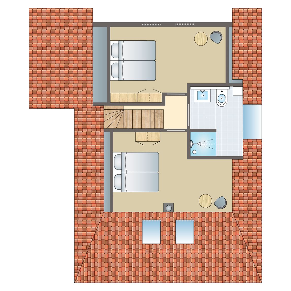 terras,verstelbaar terrasmeubilair,parasol,maximaal één auto parkeren bij de accommodatie,vaatwasser,combimagnetron,standaard keukeninventaris,koelkast met vriesvak,waterkoker,filterkoffiezetapparaat,Senseo koffiezetapparaat,gasplaat (4 pits),open keuken,centrale verwarming,houten accommodatie,in enkele accommodaties zijn huisdieren toegestaan,vrijstaand,twee verdiepingen,Energy label D G,rookvrij,één slaapkamer,circa 70 m²,eethoek,zithoek,flatscreen tv,thermostaatkranen,badkamer met douchecabine, wastafel en toilet,kinderstoel,houten ledikant,traphekje,kindveilige stopcontacten,slaapkamer met twee 1 persoons boxsprings en softtopper,vide met twee 1 persoons boxsprings,bedden voorzien van dekbedden en hoofdkussens2 persoons bungalow Speciaal toegankelijk
