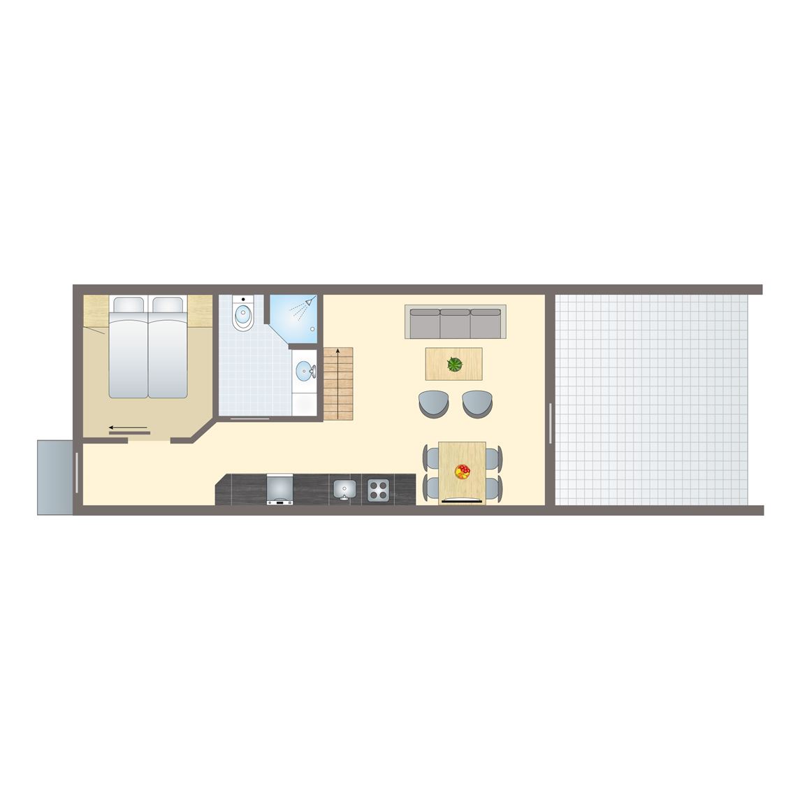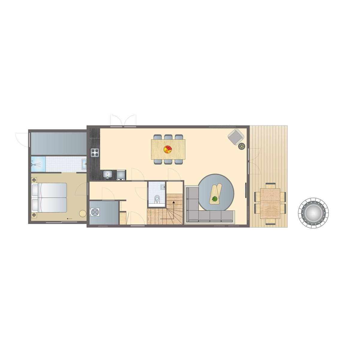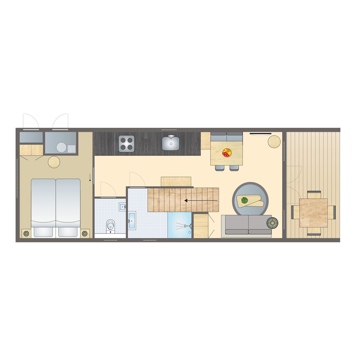 Gratis wifi,centrale of elektrische verwarming,stenen accommodatie,huisdieren zijn toegestaan in sommige vakantiewoningen tegen betaling,geschakeld,geschikt voor 2 volwassenen en 4 kinderen,standaard interieur,twee verdiepingen,rookvrij,één slaapkamer,circa 59 m²,terras en balkon,terrasmeubilair,parkeren in de buurt van de accommodatie,vaatwasser,koelkast met vriesvak,convectieoven,magnetron beschikbaar in sommige accommodaties of te leen bij de receptie,standaard keukeninventaris,waterkoker,filterkoffiezetapparaat,keramische kookplaat (4 pits),open keuken,eethoek,woonkamer is gelegen op de eerste verdieping,zithoek,flatscreen tv,2 persoonsbedbank,Kinderzitje (op aanvraag en tegen betaling),campingbedje (op aanvraag en tegen betaling),Traphekjes (op aanvraag en tegen betaling),slaapkamer met 2 persoonsbed,bedden voorzien van dekbedden en hoofdkussens,badkamer met vlakke douche, wastafel en toilet2 4 persoons bungalow
