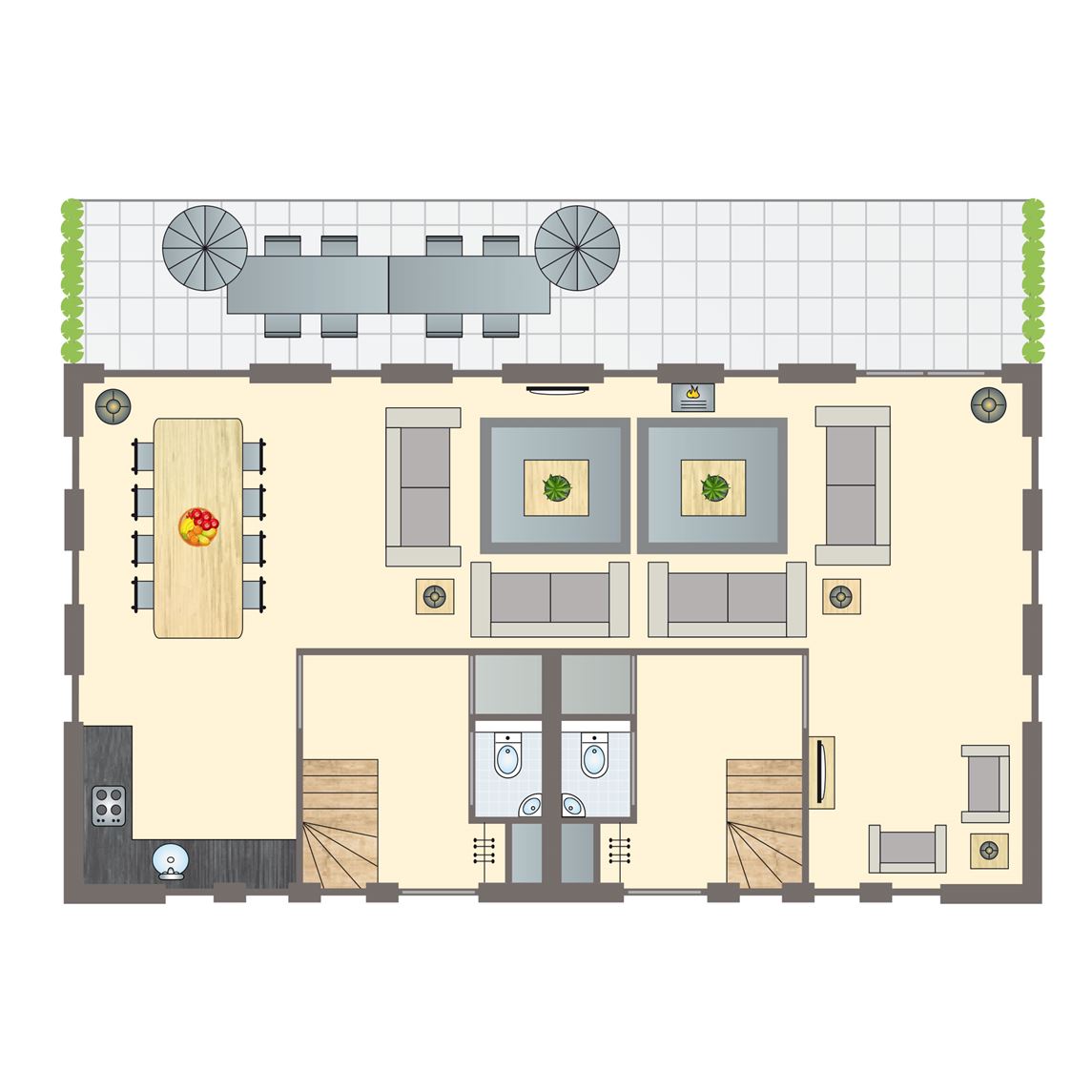 p Deze unieke groepsaccommodatie is geschikt voor twintig personen. De accommodatie is geschakeld samen met één andere groepsaccommodatie. De accommodaties worden gescheiden van elkaar door een informatieruimte die midden in het gebouw ligt. U kunt de boodschappen en barbecueservice inschakelen om helemaal verwend te worden. In de omgeving is genoeg te doen. Ga bijvoorbeeld een dagje naar Venlo of wandel door de mooie natuur. Kom ’s avonds tot rust in de hottub die voor u klaar staat en slaap in de boxspringbedden. Deze accommodatie is gelegen op een kleinschalig vakantiepark voorzien van speeltoestellen en picknicktafels voor algemeen gebruik. De accommodatie is gebouwd in de oude stallen van een historische carré boerderij en beschikt over een privé terras en een groot privé terras. p p De grote groepsaccommodatie heeft een gezellige woonkamer met flatscreen TV. De keuken is voorzien van goede apparatuur zoals een keukenmachine en twee vaatwasmachines. Op de eerste verdieping is een speelhoek ingericht met PlayStation 3. Er zijn negen slaapkamers te vinden met elk een eigen badkamer. De bedden zijn comfortabele boxsprings. U beschikt over een omheinde privé tuin met tuinmeubilair en een trampoline. De hottub staat in de tuin, en is te huur. Er is een overdekte fietsenstalling met oplaadpunt voor de elektrische fietsen aanwezig. p3.015,40