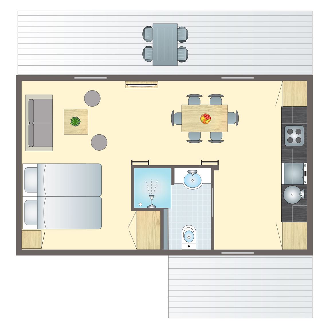 p Genieten van de natuur, parkfaciliteiten en moderne vakantiewoningen Dan is dit park een goede keuze! Park Berkenrhode ligt in het Hart van de Veluwe. Een goede uitvalsbasis voor lange wandel of fietstochten door de bossen. Heeft u zelf geen fiets bij Deze zijn ook te huur op het park. Park Berkenrhode is huisdiervriendelijk, dus ook uw hond kan mee de natuur in. Blijft u liever een dagje op het park Dan is er ook genoeg te doen. Zo is er een duurzaam verwarmd buitenzwembad aanwezig om heerlijk baantjes te zwemmen. In de Privé Spa Wellness met bijvoorbeeld sauna en bubbelbad is het optimaal ontspannen in alle rust en privacy. De woning heeft in de tuin ook een sauna staan. Voor een maaltijd of drankje wordt u welkom geheten in Le Grand Café. Hier worden met locale producten heerlijke gerechten bereidt. In de Cafetaria kunt terecht voor een snelle hap. Het park beschikt over een grote diversiteit aan vakantiewoningen. p p Deze vrijstaande vakantiewoning is geschikt voor zes personen en heeft een oppervlakte van 55m2.In de woonkamer vindt u onder andere een comfortabele bank met een televisie, een fauteuil, eetkamertafel met zes stoelen en gezellige elektrische sfeerhaard. De open keuken is van alle gemakken voorzien met bijvoorbeeld een inductiekookplaat, vaatwasser, combimagnetron en koel vriescombinatie. Tevens zijn er een koffiezetapparaat en waterkoker aanwezig. Er zijn drie slaapkamers met comfortabele boxspringbedden (één kamer met twee bedden tegen elkaar, één kamer met twee bedden uit elkaar en één slaapkamer met stapelbed). De moderne badkamer is ingedeeld met een inloopdouche, toilet en wastafel. De slaapkamers en de badkamer beschikken over elektrische verwarming. De tuin heeft een ruim gemeubileerd terras met pergola en een eigen parkeerplaats. Deze Heide Lodge Eco beschikt over een sauna in de tuin, zo kunt u genieten tussen de bossen bij de woning zelf! p663,72