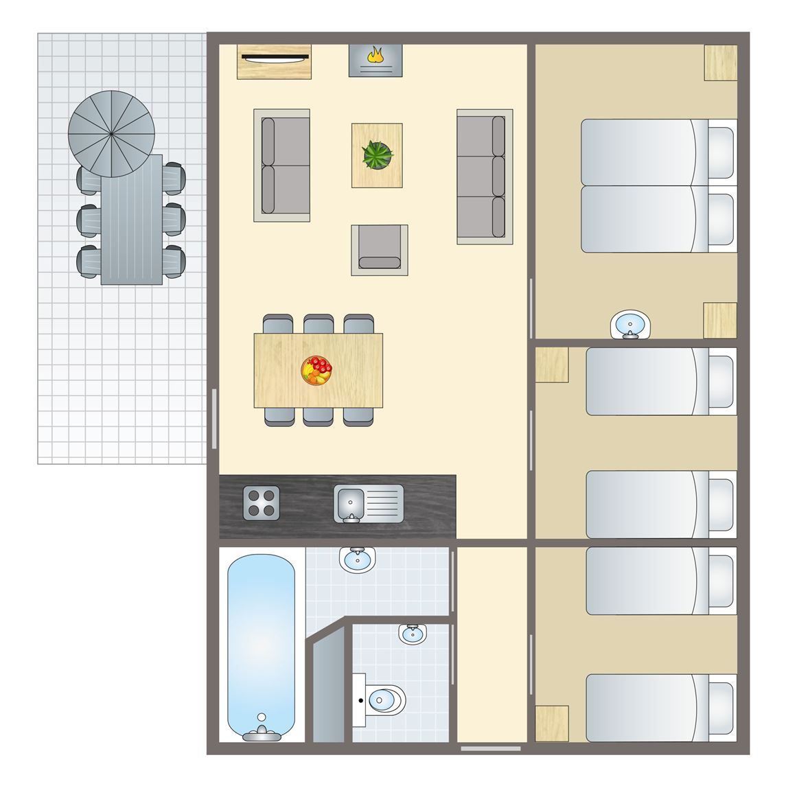 Comfortabele 4 persoons vakantiewoning met bubbelbad op de Hoge Veluwe.