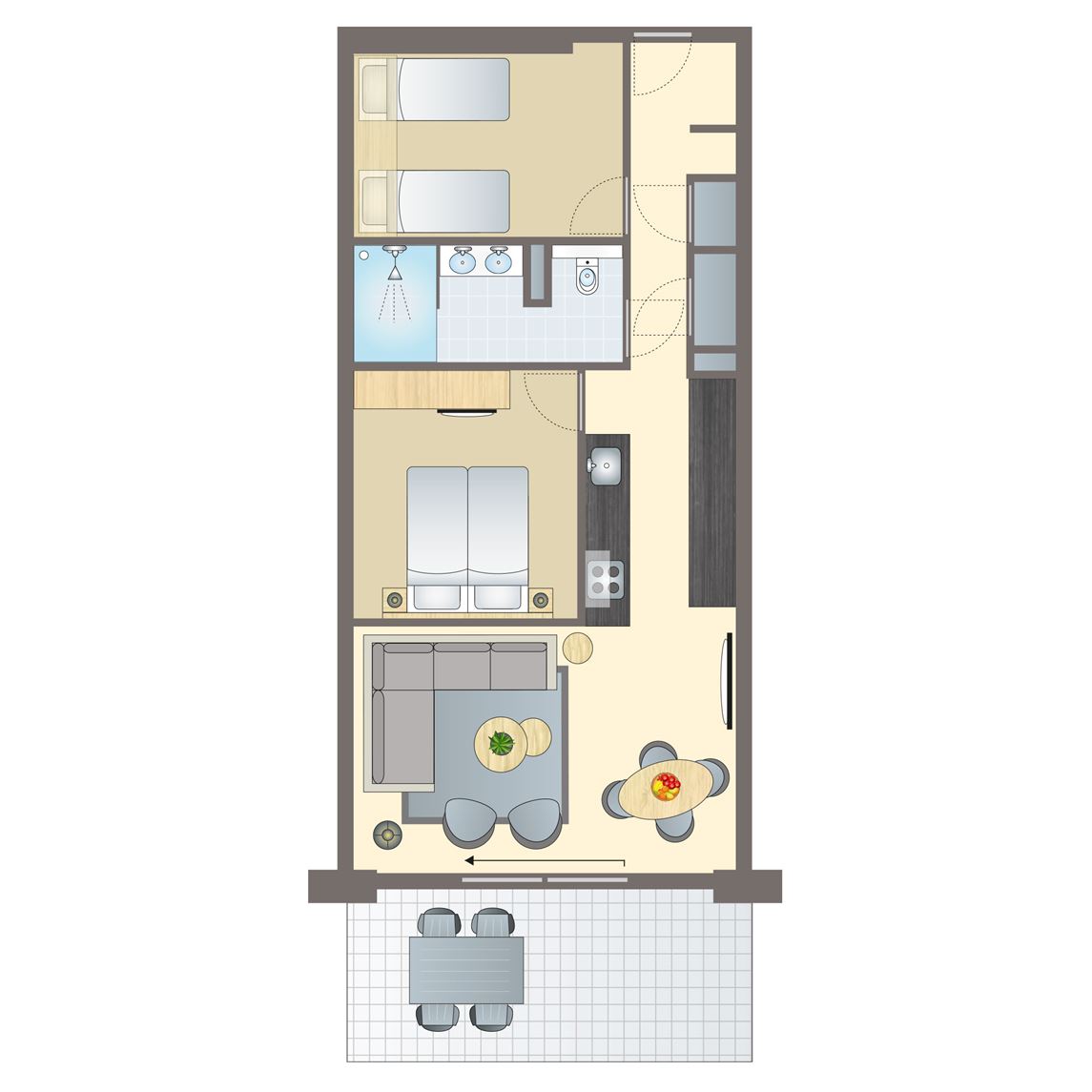 gratis wifi,centrale verwarming,in enkele accommodaties zijn huisdieren toegestaan,appartement,drie slaapkamers,gelijkvloers,rookvrij,Energy label B C,circa 108 m²,luxe,flatscreen tv,blu ray speler,zithoek,eethoek,kinderstoel (tegen betaling),campingbedje (op aanvraag en tegen betaling),slaapkamer met twee 1 persoons boxsprings, softtopper en tv,opgemaakte bedden bij aankomst,twee slaapkamers met twee 1 persoons boxsprings,bedden voorzien van dekbedden en hoofdkussens,sauna,badkamer met ligbad, vlakke douche en dubbele wastafel,apart toilet,wasmachine en droger,föhn,thermostaatkranen,vaatwasser,combimagnetron,standaard keukeninventaris,koelkast met vriesvak,waterkoker,Nespresso koffiemachine,filterkoffiezetapparaat,open keuken,keramische kookplaat,terras of balkon,terrasmeubilair4 persoons appartement