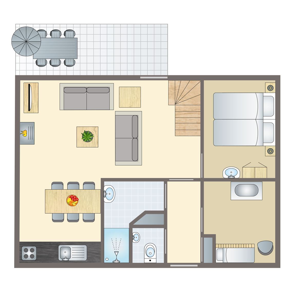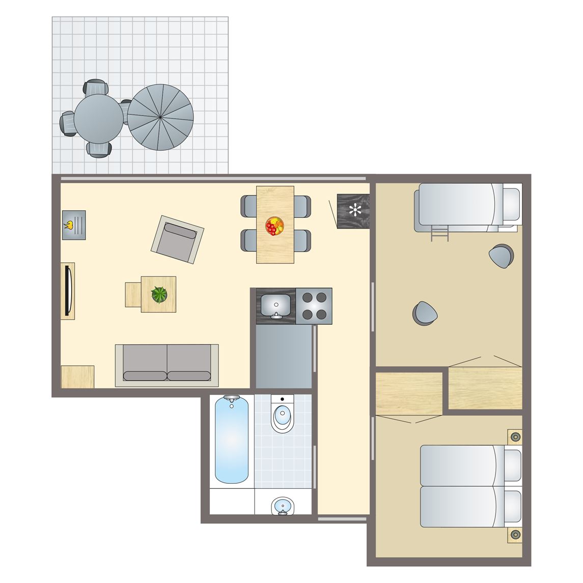 gratis wifi,bereikbaar met lift,centrale verwarming,gelegen in het souterrain,in enkele accommodaties zijn huisdieren toegestaan,appartement,één slaapkamer,gelijkvloers,rookvrij,Energy label A,circa 50 m²,comfort,flatscreen tv,2 persoonsbedbank,zithoek,eethoek,kinderstoel (tegen betaling),campingbedje (op aanvraag en tegen betaling),een kinderbed kan uitsluitend in de woonkamer geplaatst worden,bedbank,slaapkamer met twee 1 persoons boxsprings, 2 persoonssofttopper en flatscreen tv,opgemaakte bedden bij aankomst (m.u.v. bedbank),bedden voorzien van dekbedden en hoofdkussens,badkamer met ligbad, douchecabine en dubbele wastafel,apart toilet,was droogcombinatie,föhn,thermostaatkranen,vaatwasser,combimagnetron,standaard keukeninventaris,koelkast met vriesvak,waterkoker,Nespresso koffiemachine,open keuken,inductiekookplaat (4 pits),afgesloten terras,terrasmeubilair6 persoons bungalow