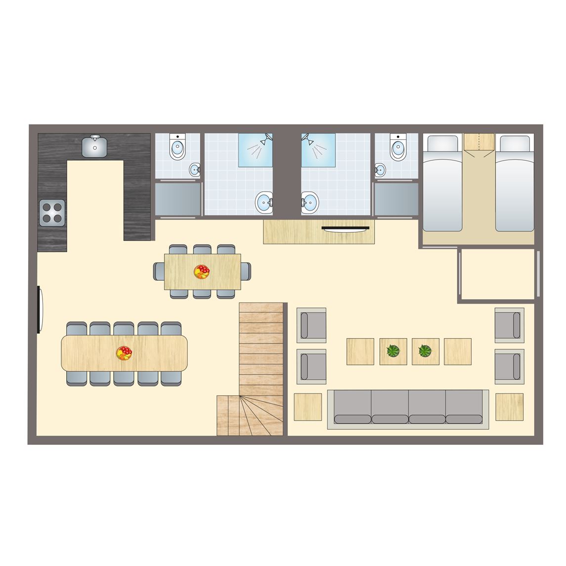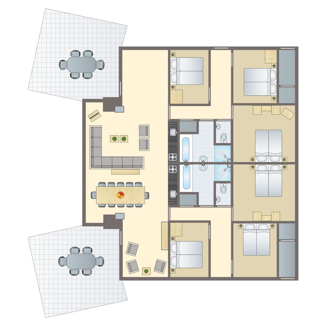 gratis wifi,luxueus interieur,centrale verwarming,huisdiervrij,vrijstaand,vijf slaapkamers,twee verdiepingen,rookvrij,circa 160 m²,comfort,flatscreen tv (zonder HDMI aansluiting),zithoek,bio ethanol sfeerhaard,eethoek,traphekje,kinderstoel,campingbedje,drie slaapkamers met twee 1 persoons boxsprings op de eerste verdieping,slaapkamer met twee 1 persoons boxsprings, 2 persoonssofttopper en wastafel,slaapkamer met twee 1 persoons boxsprings en wastafel op de eerste verdieping,bedden voorzien van dekbedden en hoofdkussens,badkamer met douchecabine, wastafel en toilet,badkamer met ligbad, wastafel en toilet op de eerste verdieping,twee badkamers met douchecabine, wastafel en toilet op de eerste verdieping,apart toilet op de begane grond,thermostaatkranen,vaatwasser,combimagnetron,standaard keukeninventaris,koelkast met vriesvak,waterkoker,Senseo koffiezetapparaat,filterkoffiezetapparaat,keramische kookplaat (4 pits),barbecue,terras,terrasmeubilair,ligstoelen (in de zomer),parasol,maximaal twee auto's parkeren bij de accommodatie6 persoons bungalow