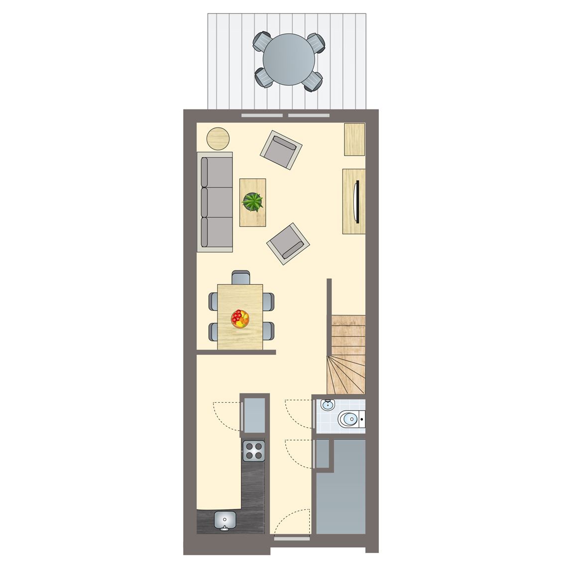 gratis wifi,modern interieur,centrale verwarming,in enkele accommodaties zijn huisdieren toegestaan,geschakeld,drie slaapkamers,twee verdiepingen,rookvrij,Energy label A,circa 90 m²,comfort,flatscreen tv,chromecast,zithoek,fauteuil,eethoek,kinderstoel,campingbedje,slaapkamer met twee 1 persoons boxsprings en 2 persoonssofttopper op de eerste verdieping,slaapkamer met twee 1 persoons boxsprings op de eerste verdieping,slaapkamer met twee 1 persoons boxsprings op de tweede verdieping,bedden voorzien van dekbedden en hoofdkussens,badkamer met rainshower, dubbele wastafel met badkamermeubel en toilet op de eerste verdieping,apart toilet op de begane grond,thermostaatkranen,combimagnetron,vaatwasser,extra grote koelkast met apart vriesvak,waterkoker,extra keukenkasten,standaard keukeninventaris,Nespresso koffiemachine,filterkoffiezetapparaat,open keuken,inductiekookplaat (4 pits),terras,deels verstelbaar terrasmeubilair,parasol,parkeren op de centrale parkeerplaats4 6 persoons woning
