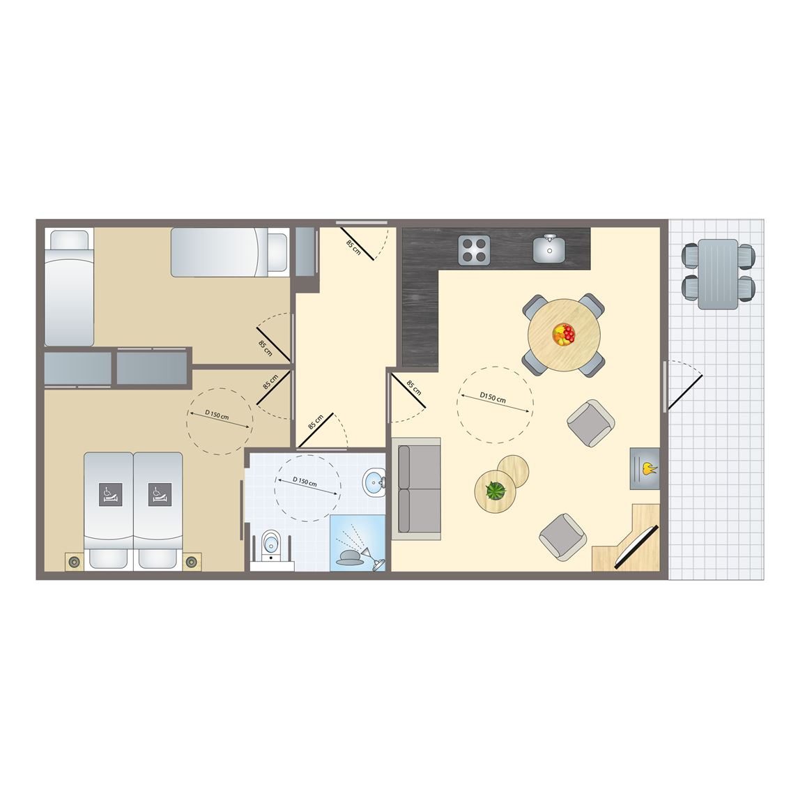 gratis wifi,vernieuwd interieur,centrale verwarming,in enkele accommodaties zijn huisdieren toegestaan,vrijstaand,twee slaapkamers,gelijkvloers,rookvrij,Energy label C,circa 75 m²,comfort,tv,zithoek,eethoek,kindveilige stopcontacten,kinderstoel,campingbedje,slaapkamer met twee 1 persoons boxsprings,slaapkamer met twee 1 persoons boxsprings en softtopper,bedden voorzien van dekbedden en hoofdkussens,badkamer met ligbad, douche en wastafel,apart toilet,wasmachine en wasdroger of was droogcombinatie,thermostaatkranen,vaatwasser,combimagnetron,standaard keukeninventaris,koelkast met vriesvak,waterkoker,Senseo koffiezetapparaat,filterkoffiezetapparaat,open keuken,gasplaat (4 pits),terras,deels verstelbaar terrasmeubilair,parasol,maximaal één auto parkeren bij de accommodatie6 persoons bungalow