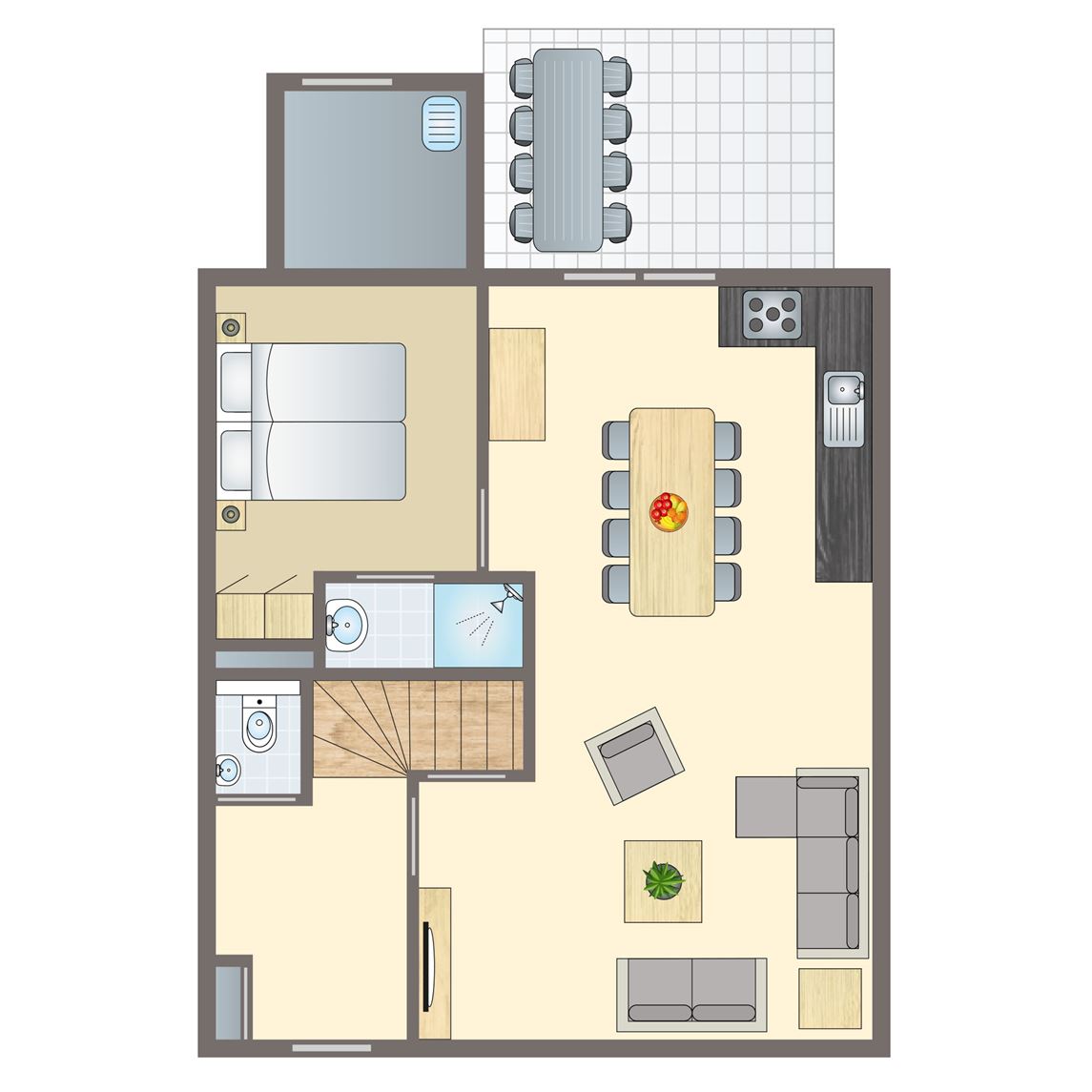 gratis wifi RDE,inpandige berging,centrale verwarming,vloerverwarming,in enkele accommodaties zijn huisdieren toegestaan,vrijstaand,één slaapkamer,gelijkvloers,rookvrij,Energy label A,circa 70 m²,luxe,flatscreen tv,chromecast,zithoek,eethoek,kinderstoel,campingbedje,slaapkamer met twee 1 persoons boxsprings, 2 persoonssofttopper en flatscreen tv,opgemaakte bedden bij aankomst,bedden voorzien van dekbedden en hoofdkussens,sauna,badkamer met ligbad, sunshower, dubbele wastafel en toilet,was droogcombinatie,föhn,thermostaatkranen,vaatwasser,combimagnetron,standaard keukeninventaris,koelkast met vriesvak,waterkoker,Nespresso koffiemachine,filterkoffiezetapparaat,open keuken,gasplaat (4 pits),terras,deels verstelbaar terrasmeubilair,parasol,ligstoelen (in de zomer),parkeren op de centrale parkeerplaats8 persoons woning