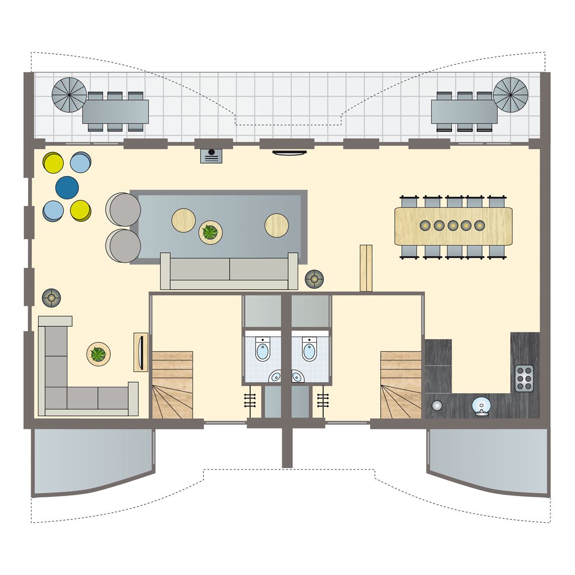 gratis wifi,modern interieur,centrale verwarming,in enkele accommodaties zijn huisdieren toegestaan,geschakeld,drie slaapkamers,twee verdiepingen,rookvrij,Energy label A B,circa 90 m²,comfort,flatscreen tv,chromecast,zithoek,eethoek,kinderstoel,campingbedje,slaapkamer met twee 1 persoons boxsprings en 2 persoonssofttopper op de eerste verdieping,slaapkamer met twee 1 persoons boxsprings op de eerste verdieping,slaapkamer met twee 1 persoons boxsprings op de tweede verdieping,bedden voorzien van dekbedden en hoofdkussens,badkamer met rainshower, dubbele wastafel en toilet op de eerste verdieping,apart toilet op de begane grond,thermostaatkranen,combimagnetron,vaatwasser,standaard keukeninventaris,waterkoker,aparte koelkast en vriezer,Nespresso koffiemachine,filterkoffiezetapparaat,open keuken,inductiekookplaat (4 pits),terras,deels verstelbaar terrasmeubilair,parasol,parkeren op de centrale parkeerplaats4 persoons Heerenhuisappartement