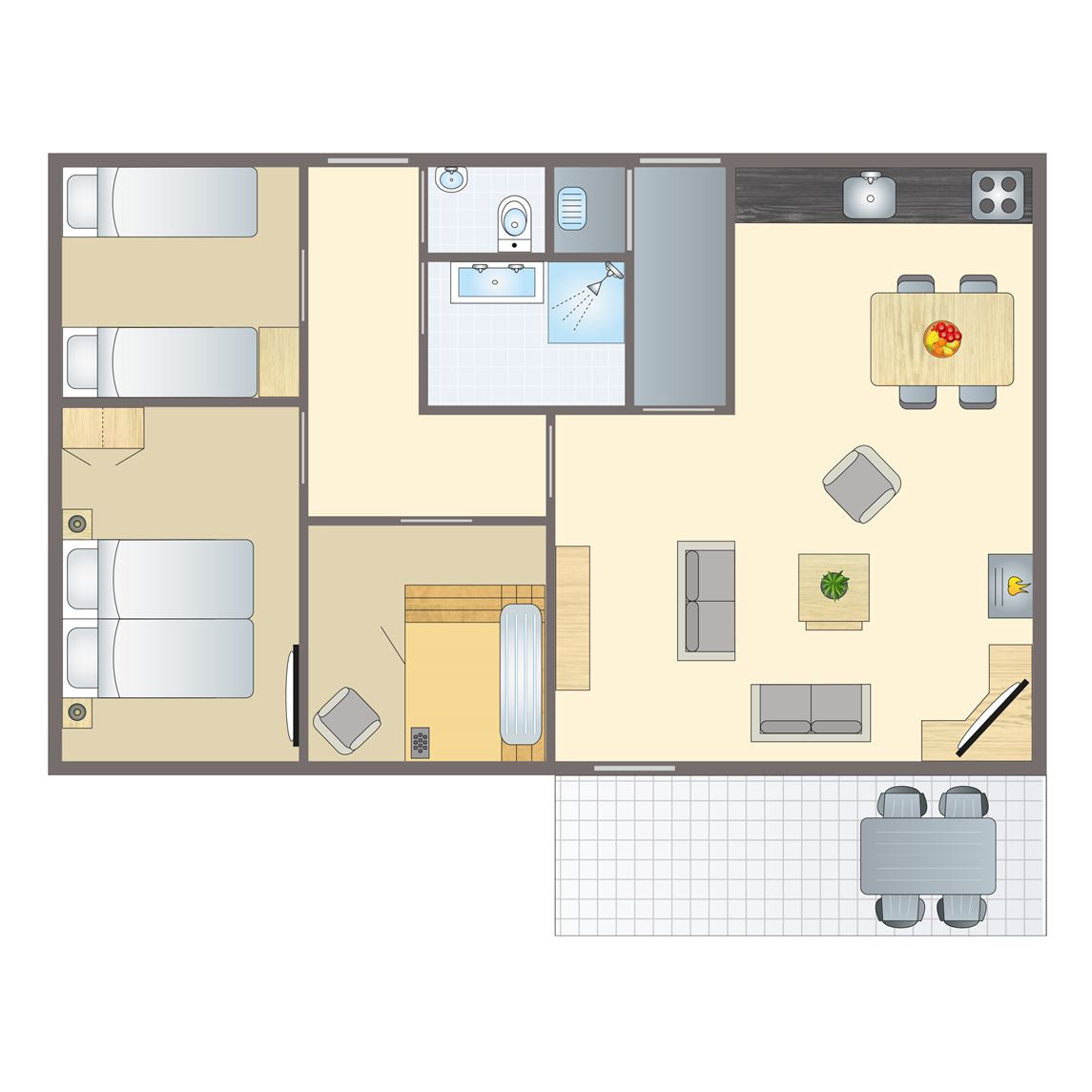 gratis wifi,centrale verwarming,in enkele accommodaties zijn huisdieren toegestaan,vrijstaand,twee slaapkamers,gelijkvloers,rookvrij,Energy label C D,circa 50 m²,comfort,digitale tv met radio,spellendoos,zithoek,open haard,eethoek,kindveilige stopcontacten,kinderstoel,campingbedje,slaapkamer met twee 1 persoons Auping boxsprings, 2 persoonssofttopper en flatscreen tv,slaapkamer met twee 1 persoons Auping boxsprings,bedden voorzien van dekbedden en hoofdkussens,sauna,badkamer met douchecabine en wastafel,apart toilet,thermostaatkranen,combimagnetron,vaatwasser,standaard keukeninventaris,koelkast met vriesvak,waterkoker,Nespresso koffiemachine,filterkoffiezetapparaat,open keuken,gasplaat (4 pits),terras,verstelbaar terrasmeubilair,parasol,maximaal één auto parkeren bij de accommodatie6 persoons bungalow Extra toegankelijk