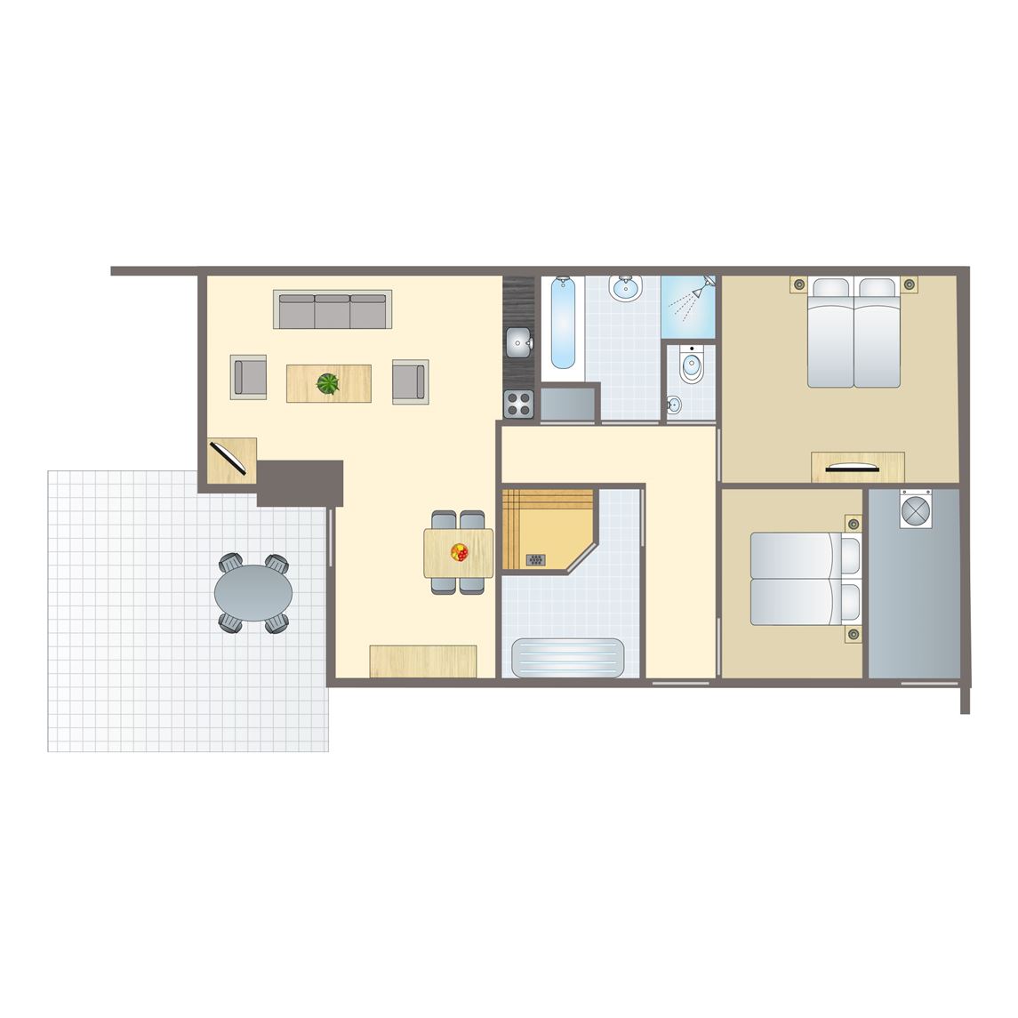 gratis wifi,geen lift aanwezig,enkele accommodaties zijn alleen bereikbaar per trap,inpandige berging,eigen skiberging,centrale verwarming,in enkele accommodaties zijn huisdieren toegestaan,appartement,twee slaapkamers,gelijkvloers of op twee verdiepingen gelegen,rookvrij,circa 71 m² 92 m²,comfort,smart tv,zithoek,eethoek,traphekje,kindveilige stopcontacten,kinderstoel (tegen betaling),campingbedje (tegen betaling),twee slaapkamers met twee 1 persoons boxsprings,bedden voorzien van dekbedden en hoofdkussens,badkamer met ligbad, wastafel en toilet,enkele accommodaties beschikken over een tweede toilet,enkele accommodaties beschikken over een apart toilet,thermostaatkranen,vaatwasser,oven,magnetron,standaard keukeninventaris,koelkast met vriesvak,waterkoker,filterkoffiezetapparaat,Nespresso koffiemachine,open keuken,elektrische kookplaat (4 pits),terrasmeubilair,balkon,parkeren op de centrale parkeerplaats4 persoons bungalow