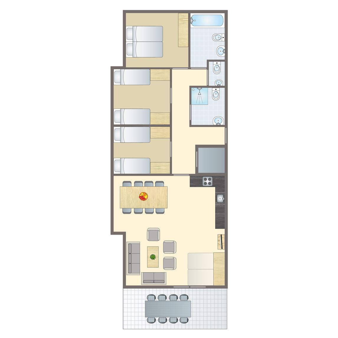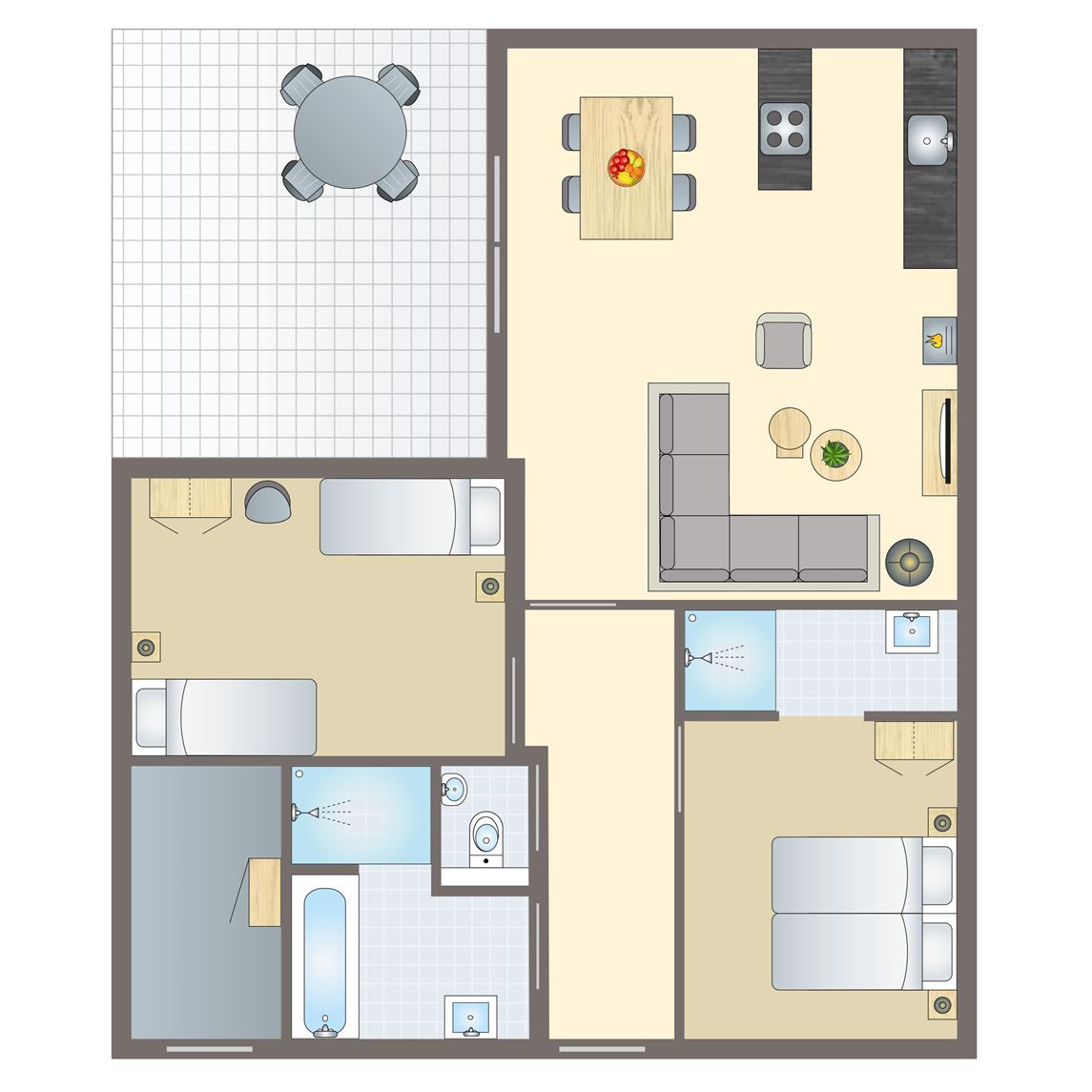 gratis wifi,bereikbaar via trap,inpandige berging,centrale verwarming,in enkele accommodaties zijn huisdieren toegestaan,appartement,drie slaapkamers,gelijkvloers,circa 80 m²,comfort,flatscreen tv,zithoek,eethoek,kindveilige stopcontacten,kinderstoel,campingbedje (op aanvraag en tegen betaling),slaapkamer met twee 1 persoons boxsprings, 2 persoonssofttopper en flatscreen tv,twee slaapkamers met twee 1 persoons boxsprings,bedden voorzien van dekbedden en hoofdkussens,badkamer met douchecabine, dubbele wastafel en toilet,vaatwasser,oven,magnetron,koelkast met vriesvak,standaard keukeninventaris,waterkoker,filterkoffiezetapparaat,Senseo koffiezetapparaat,open keuken,keramische kookplaat,deels verstelbaar terrasmeubilair,terras of balkon,parkeren op de centrale parkeerplaats6 persoons kinderwoning