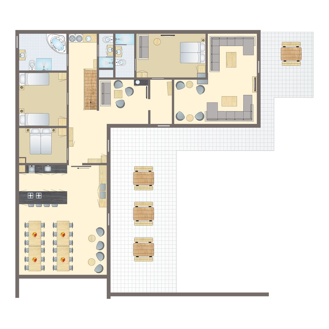 luxe,gratis wifi,inpandige berging,centrale verwarming,in enkele accommodaties zijn huisdieren toegestaan,vrijstaand,vijf slaapkamers,twee verdiepingen,rookvrij,Energy label A B,circa 160 m²,flatscreen tv,zithoek,eethoek,traphekje,kindveilige stopcontacten,kinderstoel,houten ledikant,slaapkamer met twee 1 persoons boxsprings, 2 persoonssofttopper en flatscreen tv,opgemaakte bedden bij aankomst,vier slaapkamers met twee 1 persoons boxsprings op de eerste verdieping,bedden voorzien van dekbedden en hoofdkussens,sauna in de badkamer,badkamer met douchecabine en wastafel op de eerste verdieping,badkamer met ligbad, douchecabine en wastafel,apart toilet op de begane grond,apart toilet op de eerste verdieping,föhn,was droogcombinatie,thermostaatkranen,vaatwasser,combimagnetron,standaard keukeninventaris,koelkast met vriesvak,waterkoker,Nespresso koffiemachine,filterkoffiezetapparaat,open keuken,inductiekookplaat (6 pits),terras,verstelbaar terrasmeubilair,parasol,ligstoelen (in de zomer),maximaal twee auto's parkeren bij de accommodatie8 persoons boerderij