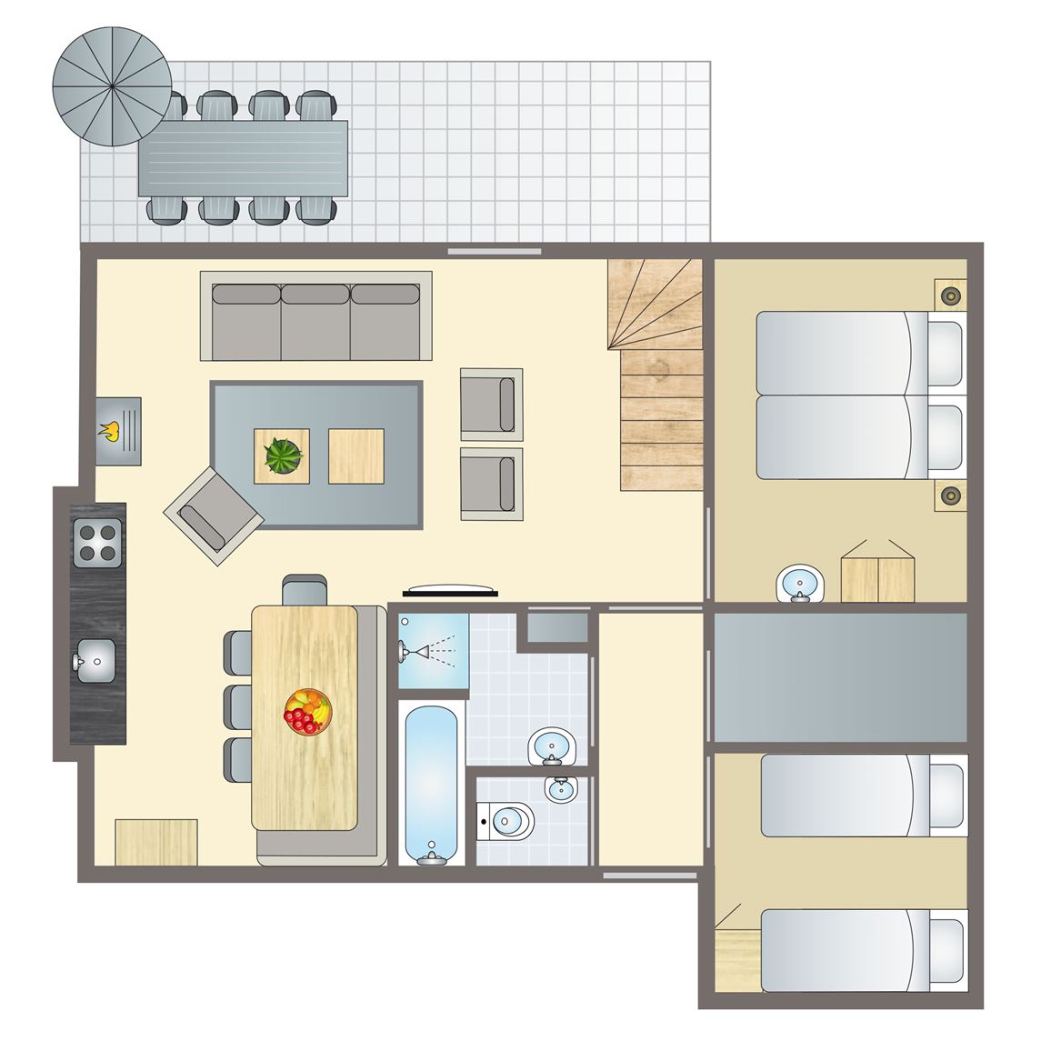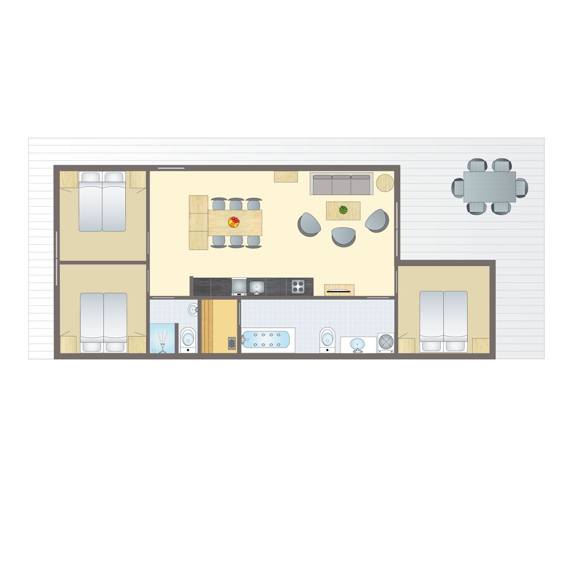 gratis wifi,centrale verwarming op de begane grond,elektrische verwarming op de verdieping,in enkele accommodaties zijn huisdieren toegestaan,vrijstaand,vier slaapkamers,twee verdiepingen,rookvrij,Energy label C,circa 115 m²,comfort,flatscreen tv,tv,zithoek,eethoek,traphekje,kindveilige stopcontacten,kinderstoel,campingbedje,slaapkamer met twee 1 persoons boxsprings,slaapkamer met twee 1 persoons boxsprings en softtopper,twee slaapkamers met twee 1 persoons boxsprings op de eerste verdieping,bedden voorzien van dekbedden en hoofdkussens,badkamer met douchecabine, wastafel en toilet op de eerste verdieping,badkamer met ligbad of douche en wastafel,op voorkeur te reserveren douche ipv ligbad,apart toilet op de begane grond,thermostaatkranen,Vernieuwde keuken,vaatwasser,combi magnetron,standaard keukeninventaris,koelkast met vriesvak,waterkoker,Senseo koffiezetapparaat,filterkoffiezetapparaat,open keuken,inductiekookplaat (5 pits),terras,deels verstelbaar terrasmeubilair,parasol,maximaal één auto parkeren bij de accommodatie6 persoons bungalow