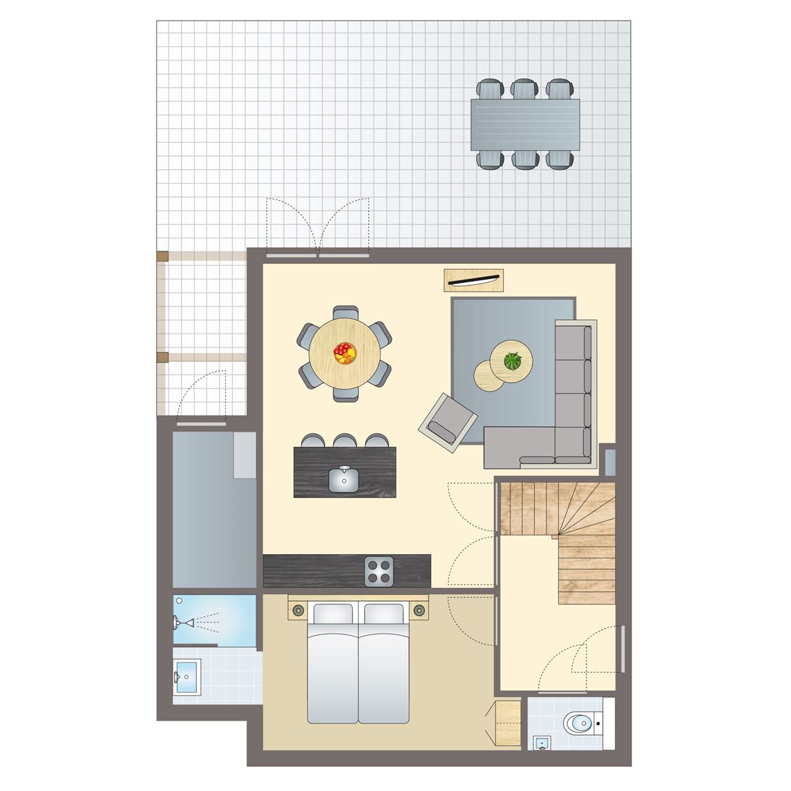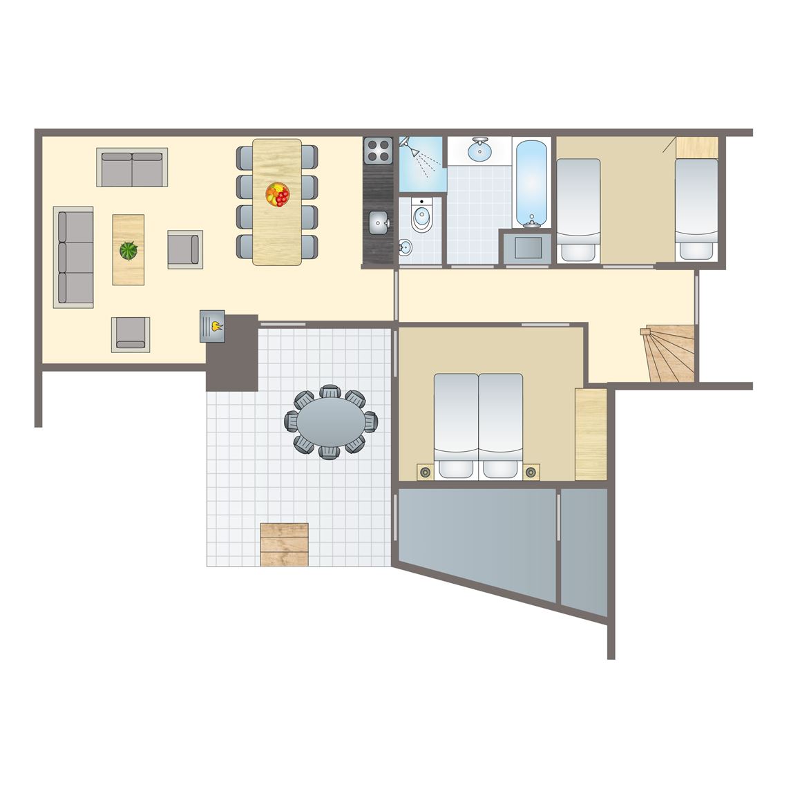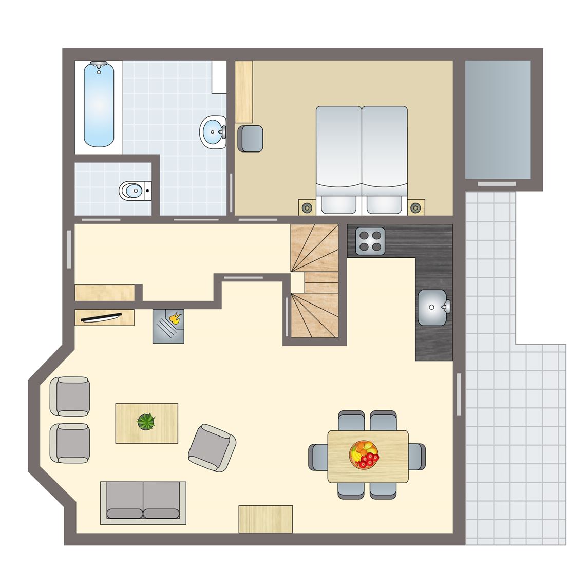 gratis wifi,vernieuwd interieur,modern interieur,enkele traptreden in de accommodatie,inpandige berging,centrale verwarming,in enkele accommodaties zijn huisdieren toegestaan,geschakeld,twee slaapkamers,twee verdiepingen,rookvrij,circa 93 m²,comfort,smart tv,HDMI aansluiting,zithoek,eethoek,traphekje,kindveilige stopcontacten,kinderstoel (tegen betaling),campingbedje (tegen betaling),twee slaapkamers met twee 1 persoons boxsprings op de eerste verdieping,bedden voorzien van dekbedden en hoofdkussens,badkamer met ligbad of inloopdouche, wastafel en toilet,apart toilet op de begane grond,thermostaatkranen,koelkast met vriesvak,magnetron,oven,standaard keukeninventaris,vaatwasser,waterkoker,filterkoffiezetapparaat,Nespresso koffiemachine,keukenblok,inductiekookplaat (4 pits),terras,terrasmeubilair,parkeren op de centrale parkeerplaats2 persoons studio