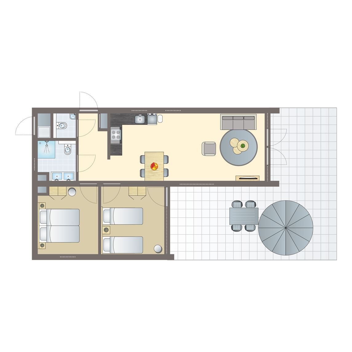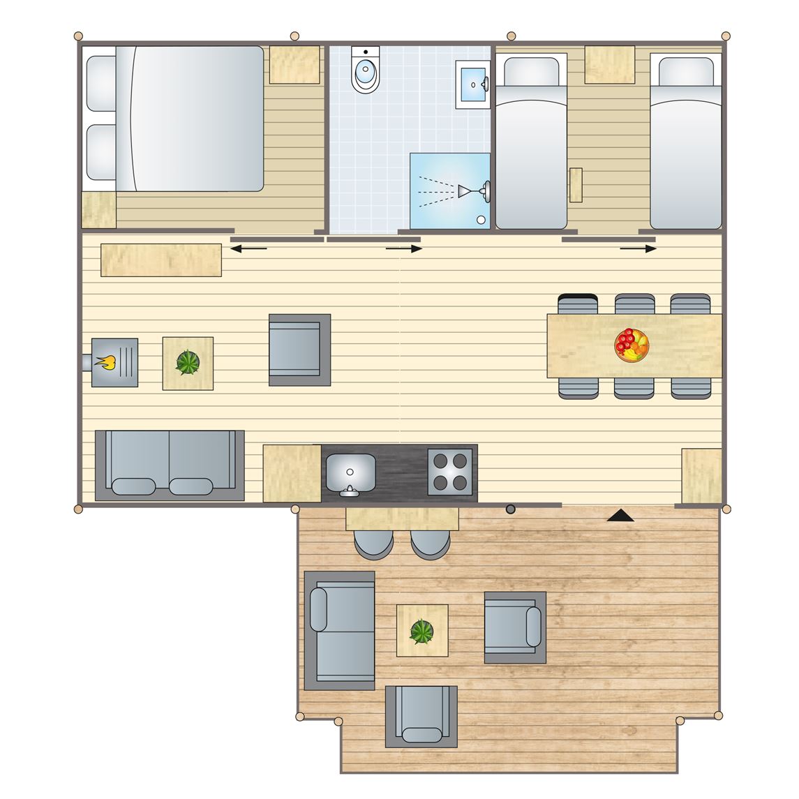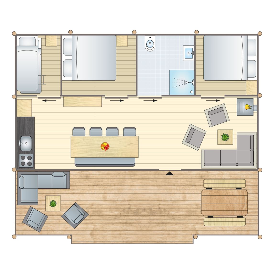 gratis wifi,vernieuwd interieur,sommige accommodaties beschikken over enkele traptreden in de woonkamer,inpandige berging,elektrische verwarming,op voorkeur te reserveren meerzicht,in enkele accommodaties zijn huisdieren toegestaan,geschakeld,twee slaapkamers,gelijkvloers,rookvrij,circa 70 m²,comfort,flatscreen tv,bluetooth radio,zithoek,open haard,eethoek,enkele accommodaties hebben een trapje (3 treden) naar de woonkamer,kindveilige stopcontacten,kinderstoel,campingbedje,slaapkamer met twee 1 persoons boxsprings,slaapkamer met twee 1 persoons boxsprings en softtopper,bedden voorzien van dekbedden en hoofdkussens,badkamer met ligbad, douchecabine en wastafel,apart toilet,thermostaatkranen,vaatwasser,combimagnetron,standaard keukeninventaris,koelkast met vriezer,waterkoker,filterkoffiezetapparaat,Senseo koffiezetapparaat,open keuken,elektrische kookplaat (4 pits),deels overdekt terras,terrasmeubilair,parasol,maximaal één auto parkeren bij de accommodatie6 persoons Visionvilla