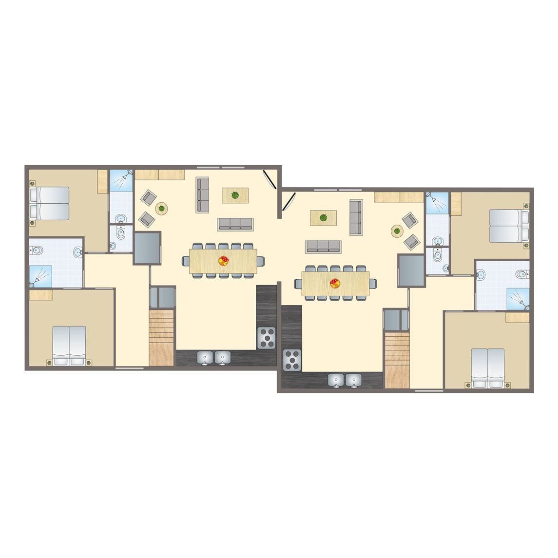 gratis wifi,inpandige berging,rietgedekte accommodatie,centrale verwarming,in enkele accommodaties zijn huisdieren toegestaan,geschakeld,zes slaapkamers,twee verdiepingen,rookvrij,Energy label A,circa 184 m²,comfort,LED flatscreen tv,zithoek,gashaard,eethoek,Kindveilige stopcontacten (van binnenuit beveiligd),traphekje,twee kinderstoelen,campingbedje (op aanvraag),kinderservies,twee slaapkamers met 2 persoons Auping boxspring (2 persoonsdekbed) en 2 persoonssofttopper op de eerste verdieping,vier slaapkamers met twee 1 persoons Auping boxsprings op de eerste verdieping,opgemaakte bedden bij aankomst,bedden voorzien van dekbedden en hoofdkussens,twee badkamers met ligbad, douchecabine, wastafel en toilet op de eerste verdieping,handdoekenpakket per persoon,twee aparte toiletten op de begane grond,keukendoekenpakket,servicepakket,koffie en theepakket,twee vaatwassers,twee combimagnetrons,waterkoker,standaard keukeninventaris,elektrische citruspers,twee koelkasten met vriesvak,Nespresso koffiemachine,filterkoffiezetapparaat,twee open keukens,gasplaat (4 pits),terras,verstelbaar terrasmeubilair,parasol,openslaande tuindeuren,parkeren op de centrale parkeerplaats6 persoons appartement