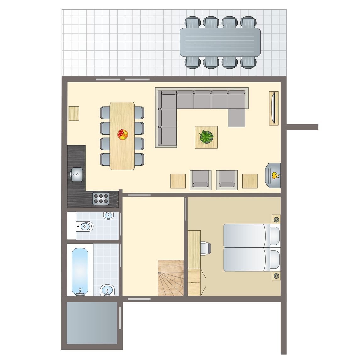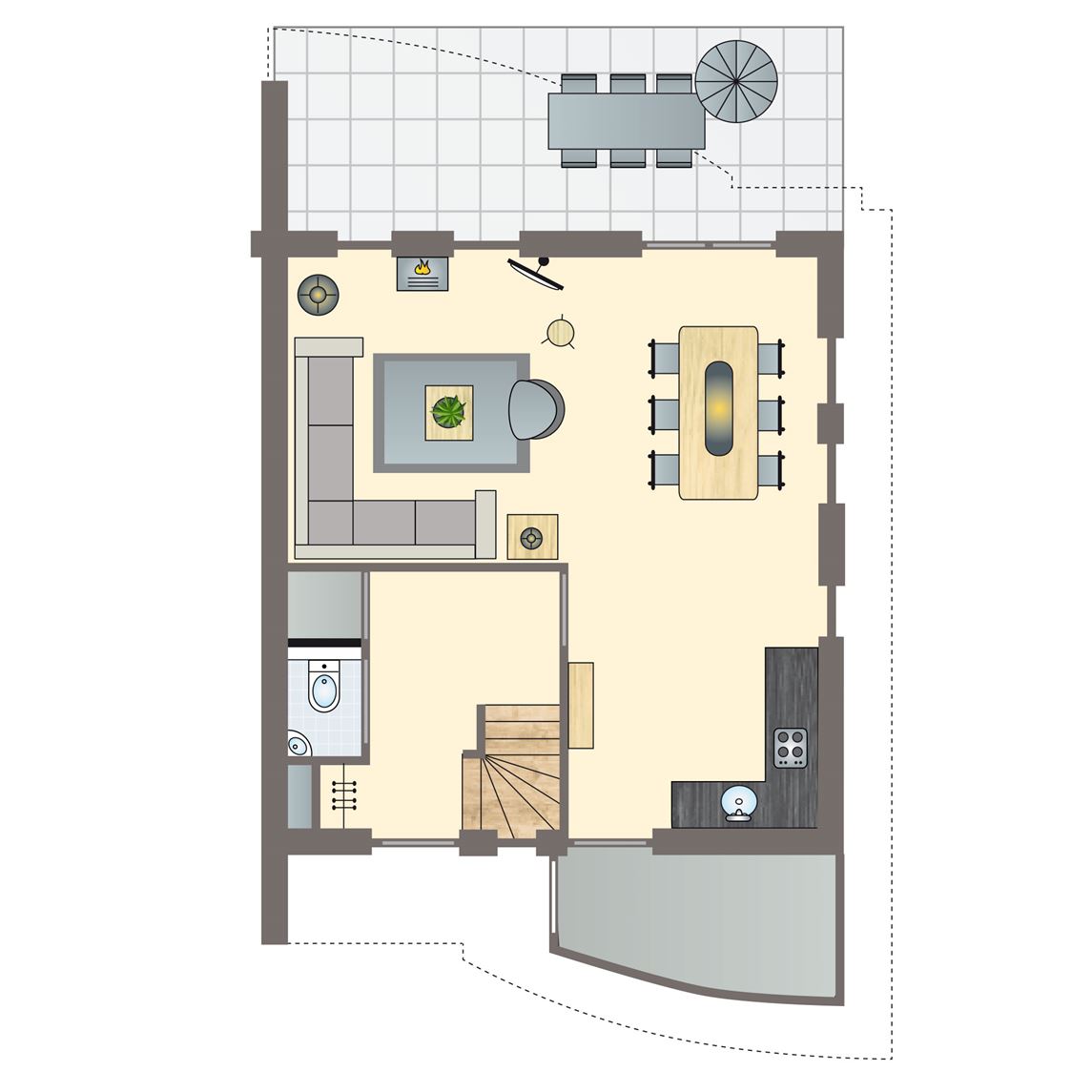 modern interieur,Op voorkeur te reserveren houten fietsoverkapping met oplaadpunt,gebouwd met duurzame materialen,airconditioning (koelen en verwarmen),centrale ligging,geschikt voor 2 volwassenen en 2 kinderen,vrijstaand,twee slaapkamers,twee verdiepingen,Energy label B C,64 m²,flatscreen tv,zithoek,eethoek,Kinderzitje (op aanvraag en tegen betaling),campingbedje (op aanvraag),slaapkamer met twee 1 persoons boxsprings en 2 persoonssofttopper op de begane grond,vide (1.40 meter hoog) met twee 1 persoonsbedden (geschikt voor kinderen t m 12 jaar),badkamer met inloopdouche, rainshower en wastafel,apart toilet op de begane grond,combimagnetron,koelkast met vriesvak,standaard keukeninventaris,vaatwasser,Nespresso Zenius waterkoker én koffiemachine (Capsules, géén cups. Verkrijgbaar bij de receptie),open keuken,inductiekookplaat (4 pits),terras,tuinstoelen,tuintafel,parkeren op de centrale parkeerplaats6 persoons vakantiehuis