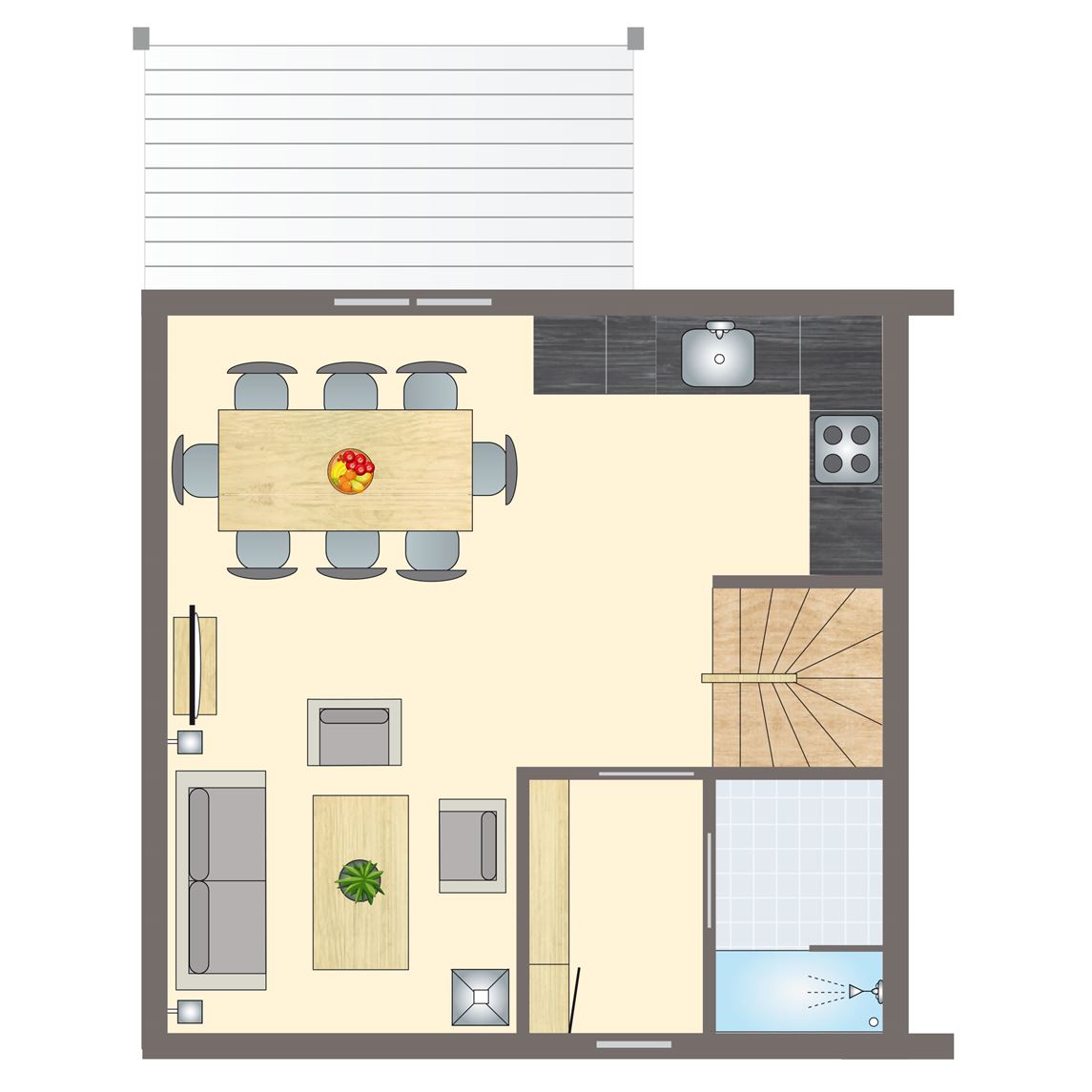 beperkte gratis wifi,centrale verwarming,in enkele accommodaties zijn huisdieren toegestaan,geschakeld,twee slaapkamers,twee verdiepingen,rookvrij,circa 45 m²,flatscreen tv,dvd speler,radio,cd speler,zithoek,eethoek,kinderstoel (tegen betaling),campingbedje (op aanvraag en tegen betaling),slaapkamer met 2 persoonsbed of twee 1 persoonsbedden op de eerste verdieping,slaapkamer met twee 1 persoonsbedden op de eerste verdieping,bedden voorzien van dekbedden en hoofdkussens,badkamer met ligbad of douchecabine, wastafel en toilet,op voorkeur te reserveren tweede toilet,vaatwasser,magnetron,standaard keukeninventaris,koelkast met vriesvak,waterkoker,Senseo koffiezetapparaat,filterkoffiezetapparaat,open keuken of aangrenzende gesloten keuken,gasplaat (4 pits),terras,terrasmeubilair,parasol4 persoons bungalow