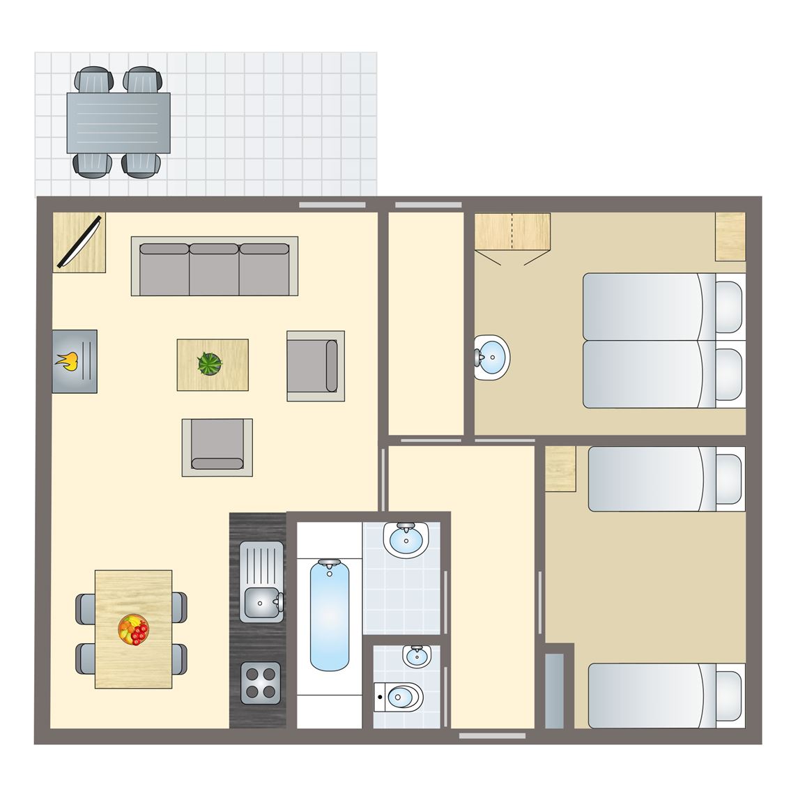 gratis wifi LGN,inpandige berging,centrale verwarming,in enkele accommodaties zijn huisdieren toegestaan,geschakeld,twee slaapkamers,gelijkvloers,rookvrij,circa 54 m²,flatscreen tv,spellendoos,zithoek,houtkachel,eethoek,kinderstoel,kinderbed,twee slaapkamers met twee 1 persoons boxsprings,bedden voorzien van dekbedden en hoofdkussens,badkamer met inloopdouche, wastafel en toilet,vaatwasser,koelkast met vriesvak,magnetron,waterkoker,standaard keukeninventaris,koffiezetapparaat,open keuken,inductiekookplaat (4 pits),parasol,terras,terrasmeubilair,parkeren op de centrale parkeerplaats6 persoons vakantiehuis